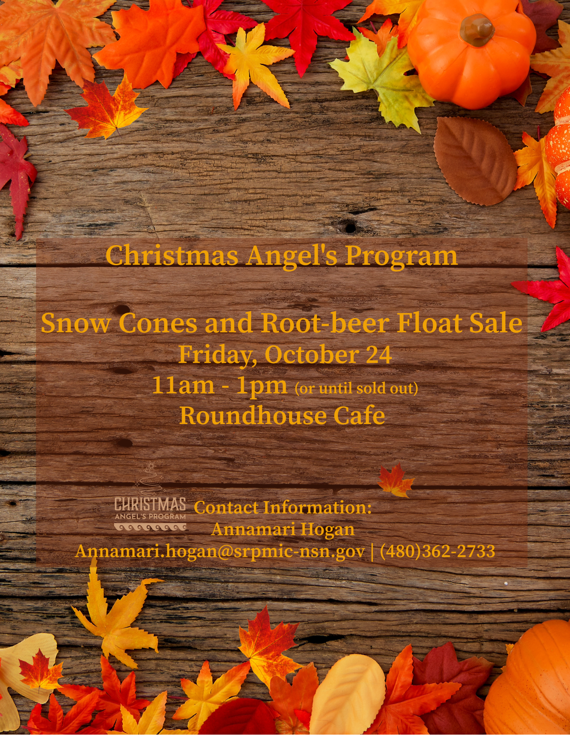 What is better than a frosty Snow Cone or a sweet Root Beer Float after a morning of hard work out in the sun!?! Supporting the SRPMIC Christmas Angels Program AND having a sweet treat!!! So, once you’re done showing your support to beautifying the Community, grab some lunch and stop by to see your Christmas Angels Crew outside the Roundhouse. We will be accepting donations of all sizes in exchange for a Snow Cone or a Root Beer/Soda Float. Bring cash or credit card/tap!