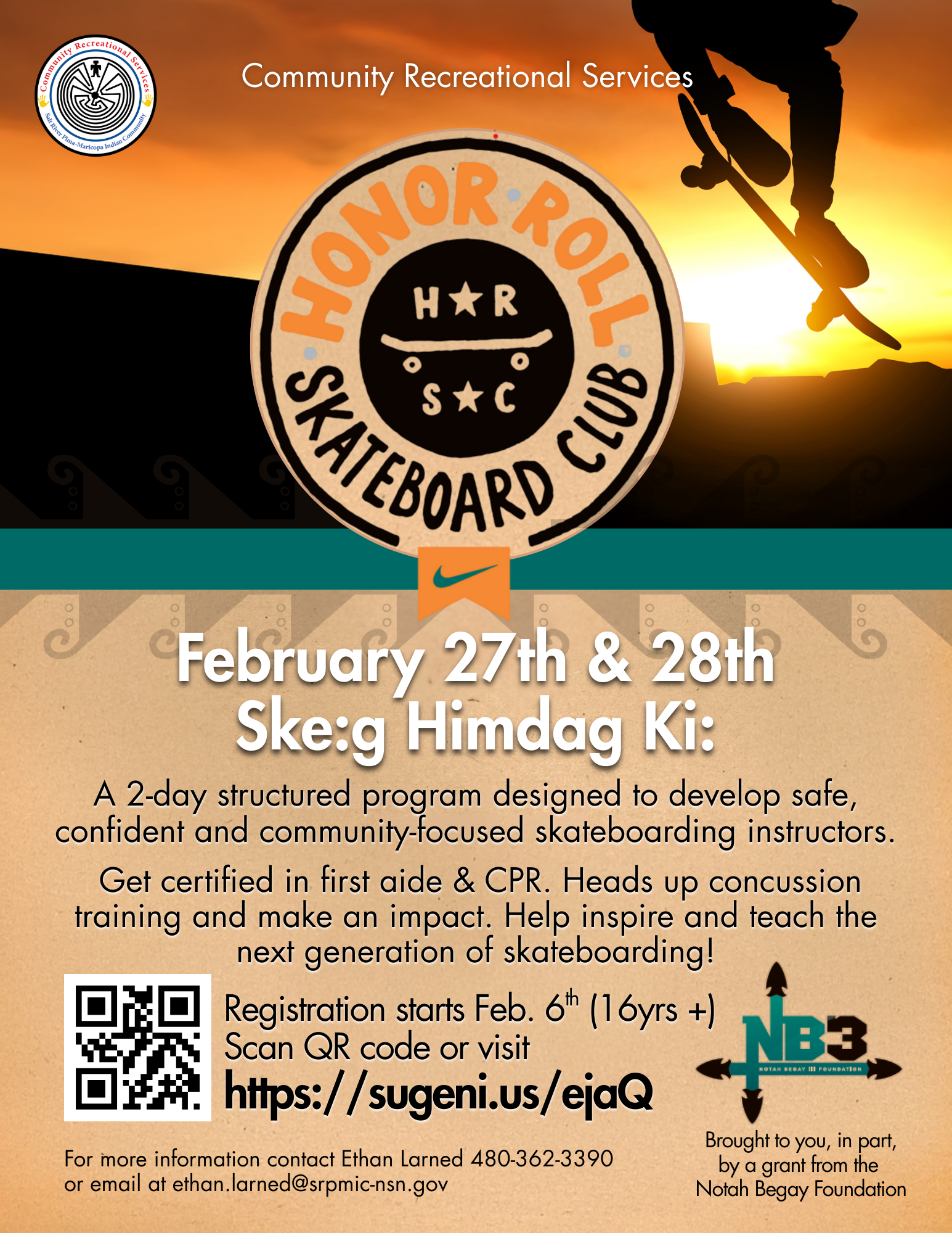 Community Recreational Services is excited to host Nike’s Honor Roll Skateboard Instructor Program, a structured training designed to develop safe, confident, and community-focused skateboard instructors.
