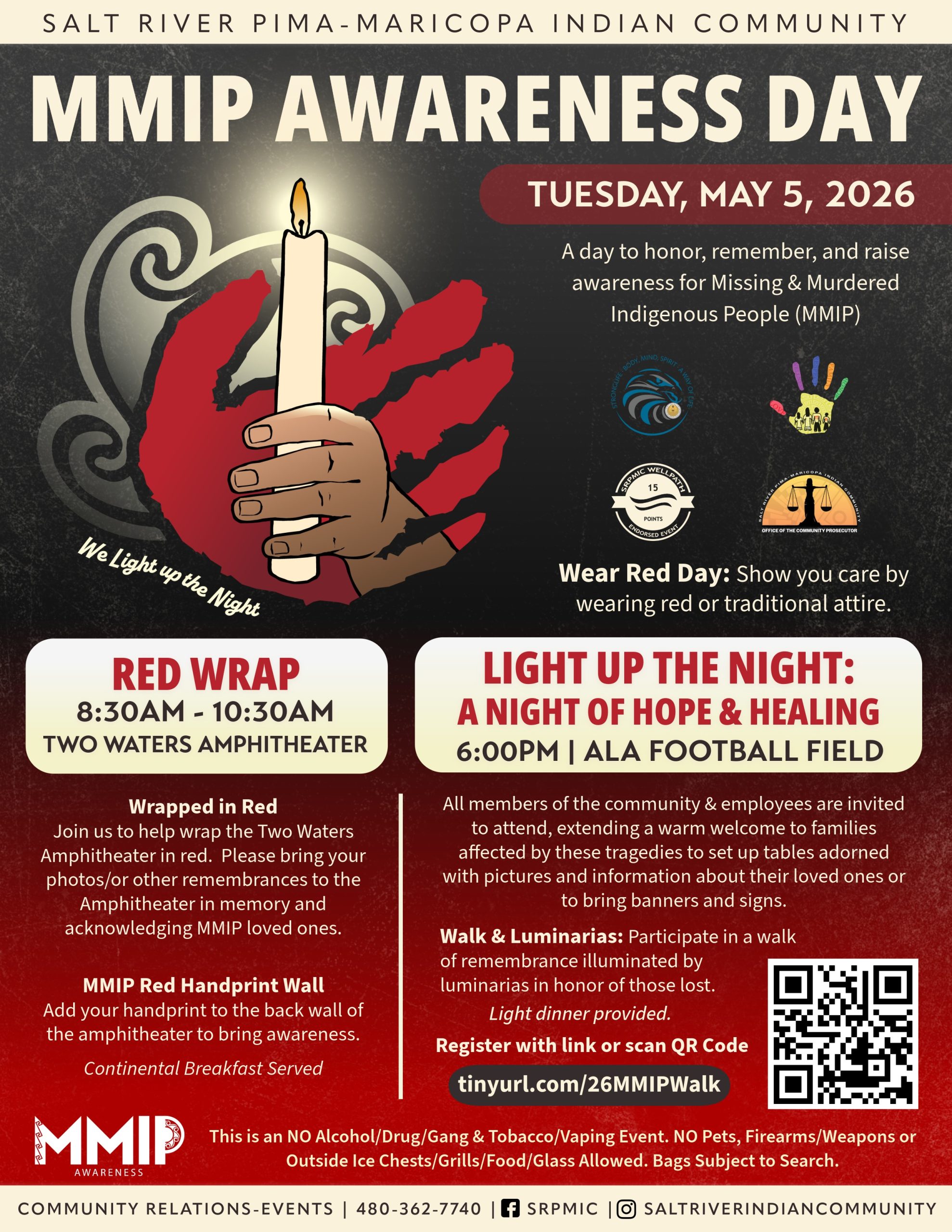 A day to honor, remember, and raise awareness for Missing and Murdered Indigenous People (MMIP). Show your awareness by wearing red or traditional attire.