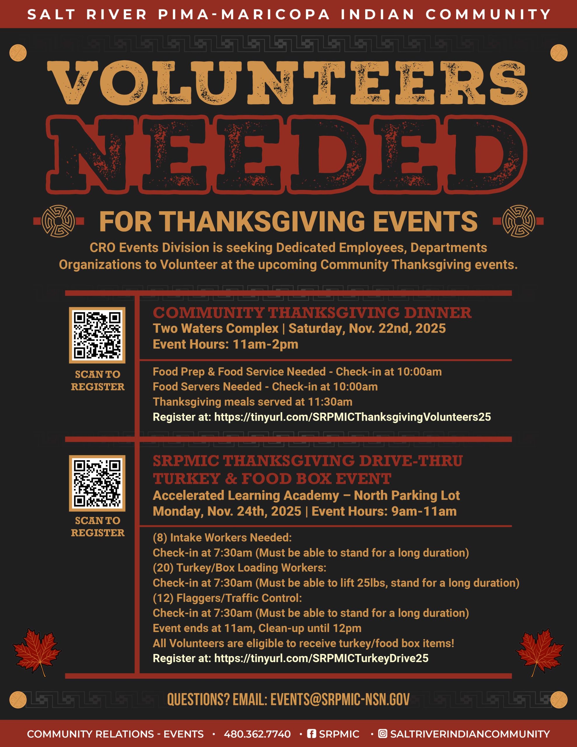 CRO Events is seeking dedicated SRPMIC employees, departments, and organizations to help at our upcoming Thanksgiving events.