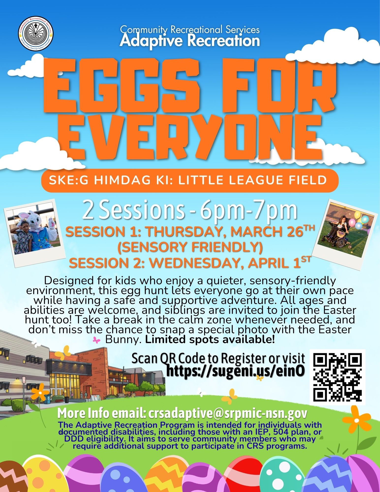 Join Adaptive Recreation for our Eggs for Everyone Easter Egg Hunt, a fun and inclusive event open to all ages. Participants can explore and collect eggs at their own pace in a safe, welcoming, and supportive environment.