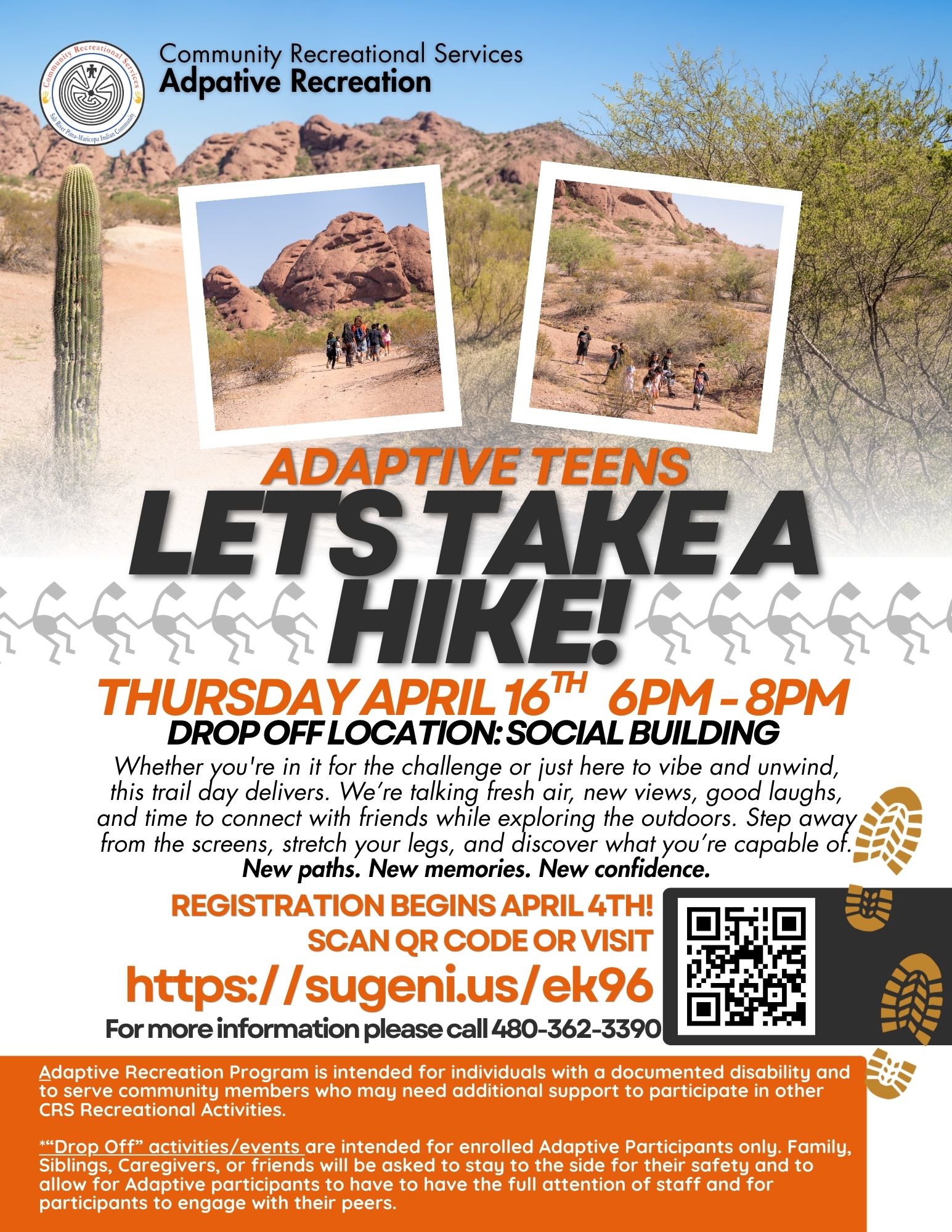 For questions or more information, please contact CRS Adaptive Recreation (480) 362-3390.