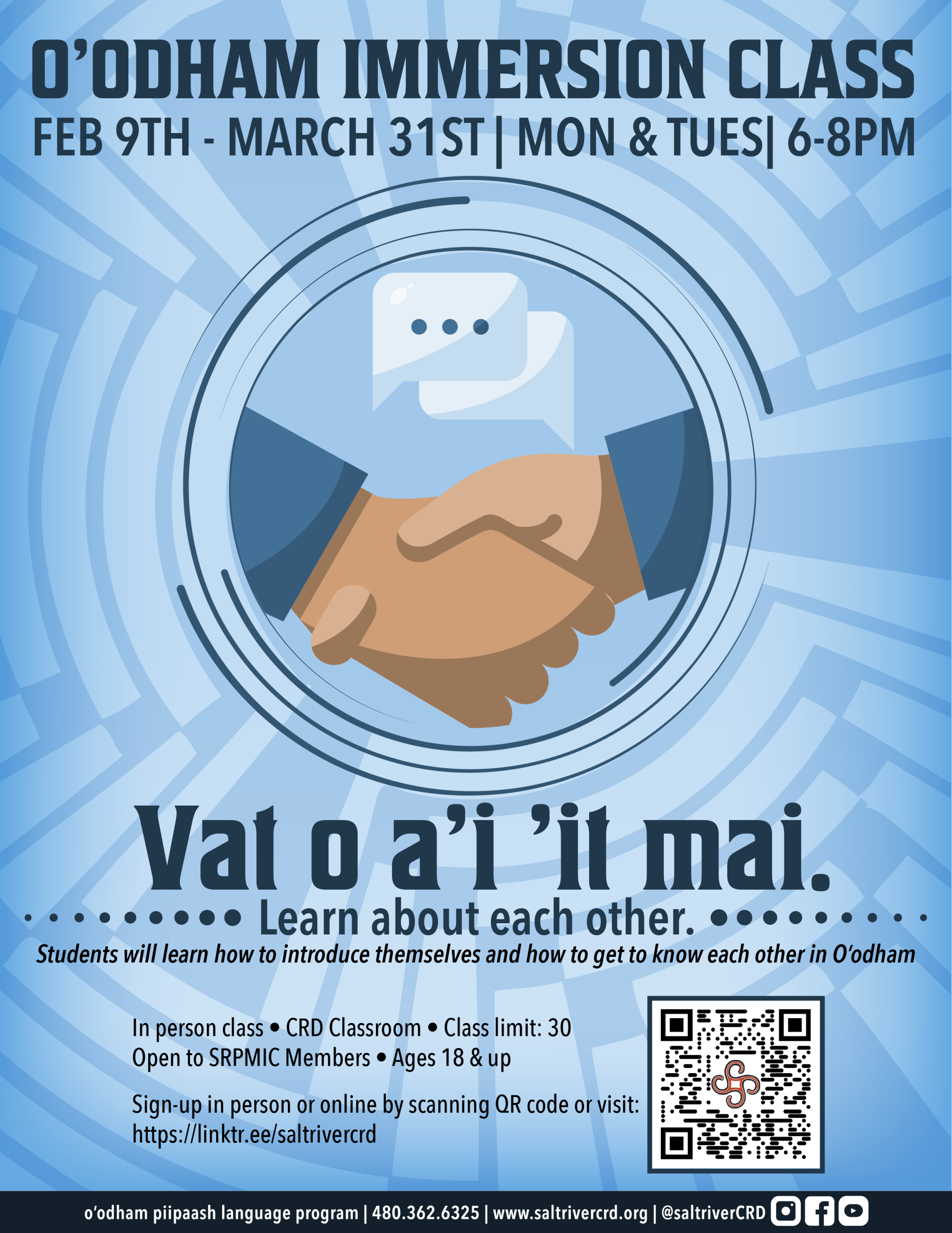 In person class • CRD Classroom • Class limit: 30 • Open to SRPMIC Members • Ages 18 & up