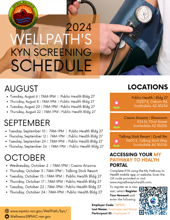 Use My Pathway to Health’s wellness App from your personal device to complete the 2 KYN steps: KYN Health Risk Assessment, and schedule your KYN Biometric Screening.